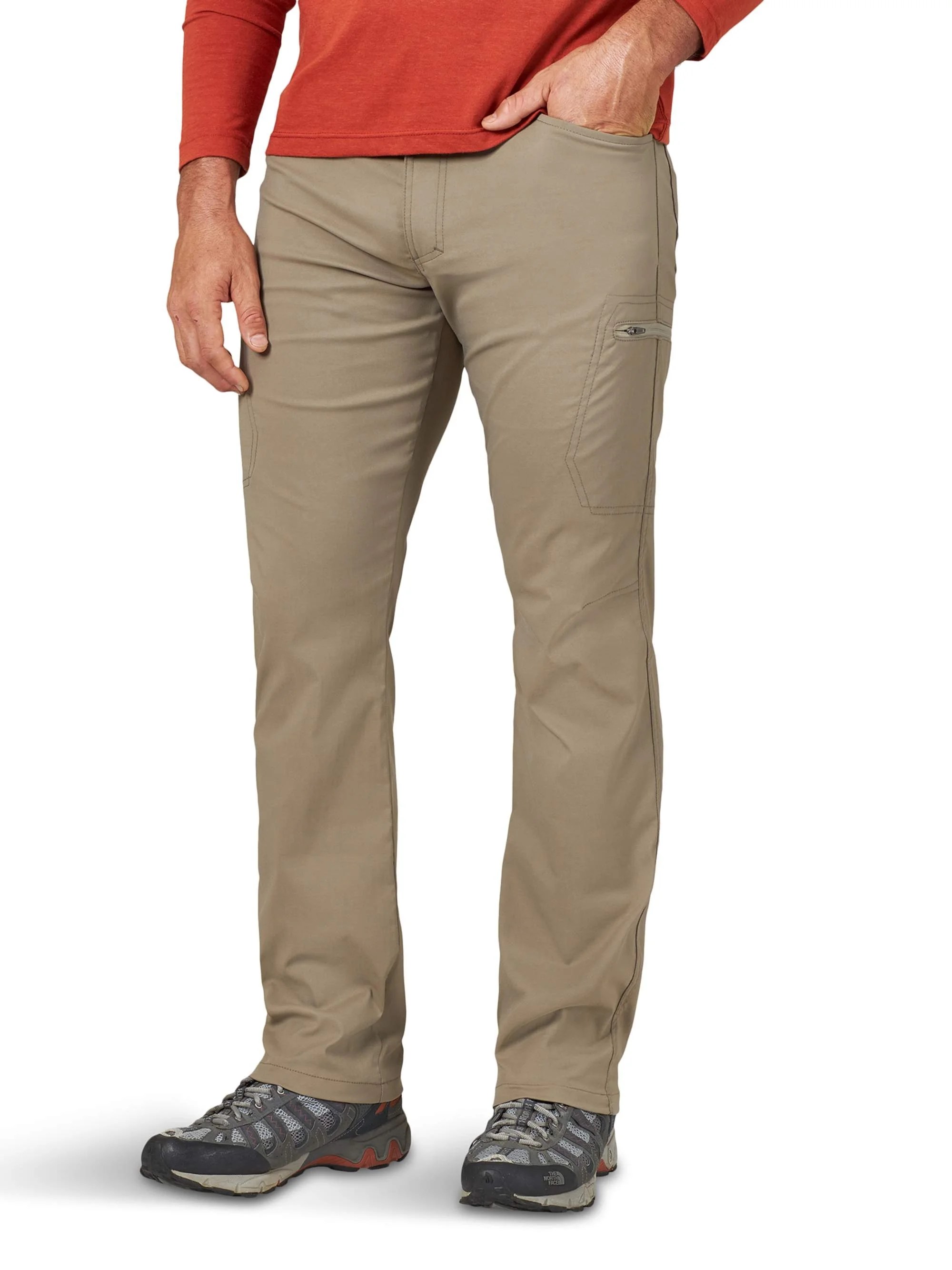 Articulated knees for added mobility. Wrangler mens cargo pants beige tag 38x30 actual 37x28. First time with these pants. Fleece lined five pocket scoop front pockets watch pocket drop in back pockets with deco knife pocket crotch gusset articulated knees hidden zip pocket. Men's outdoor fleece lined pant is a winner when walking 2 dalmatians every day.